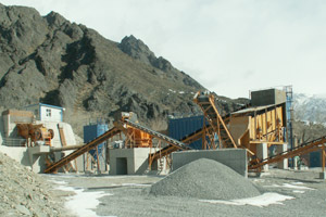 大块石料经料仓由振动给料机均匀地送进鄂式破碎机进行粗碎,粗碎后的石料由胶带输送机送到反击式破碎机进行进一步破碎;细碎后的石料由胶带输送机送进振动筛进行筛分,筛分出几种不同规格的石子,满足粒度要求的石子由成品胶带输送机送往成品料堆;不满足粒度要求的石子由胶带输送机返料送到反击式破碎机进行再次破碎,形成闭路多次循环。成品粒度可按照用户的需求进行组合和分级,为保护环境,可配备辅助的除尘设备。